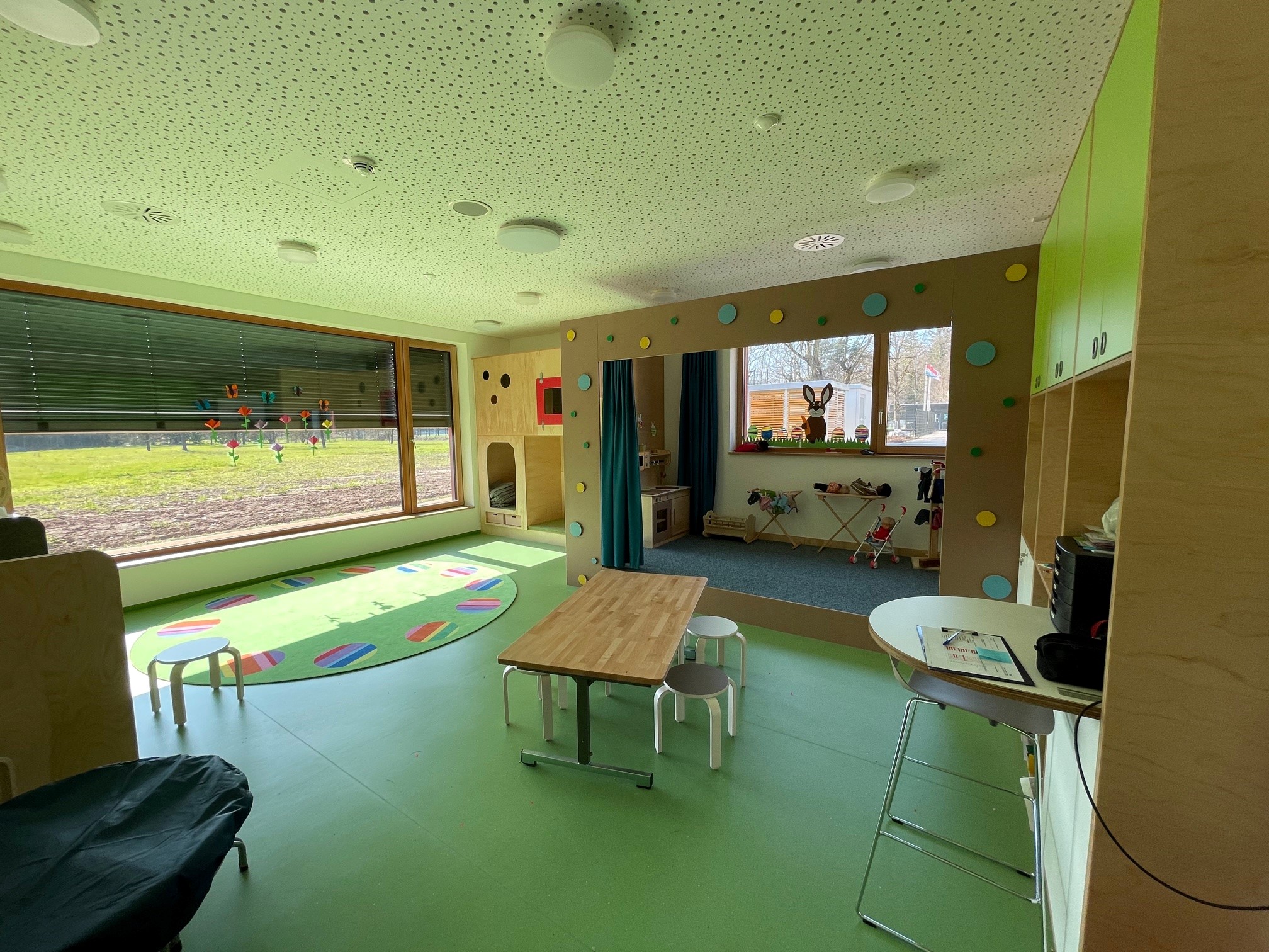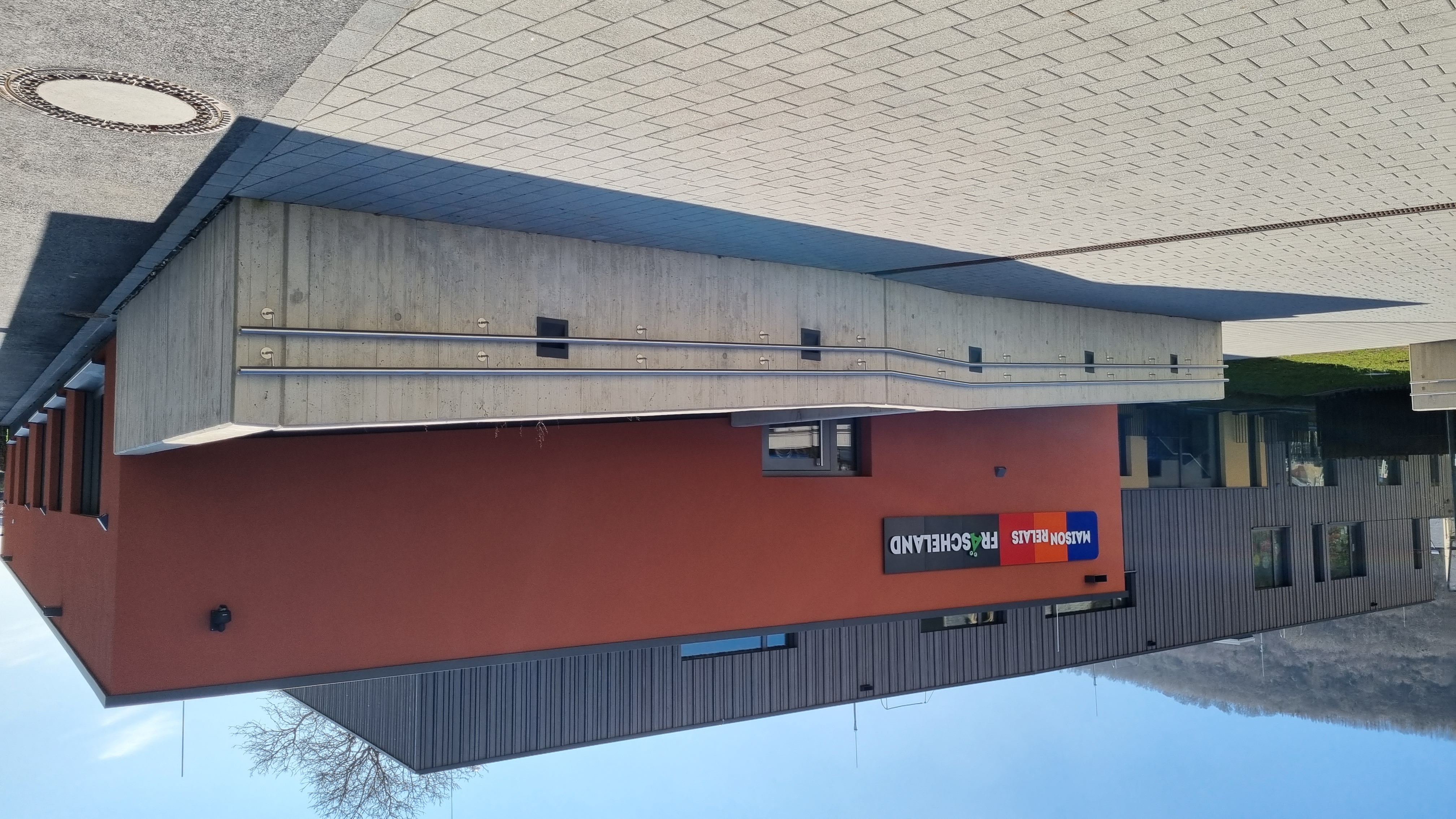 Un soin particulier a été porté aux matériaux utilisés, aussi bien à l’intérieur qu’à l’extérieur. Le confort acoustique dans une école préscolaire ainsi qu’une maison relai est primordial. Afin de limiter les bruits d’impacts, des sols en caoutchouc ont été posés. De même, pour réduire le niveau sonore global, des plafonds et murs acoustiques adaptés à chaque type d’activité ont été posés.