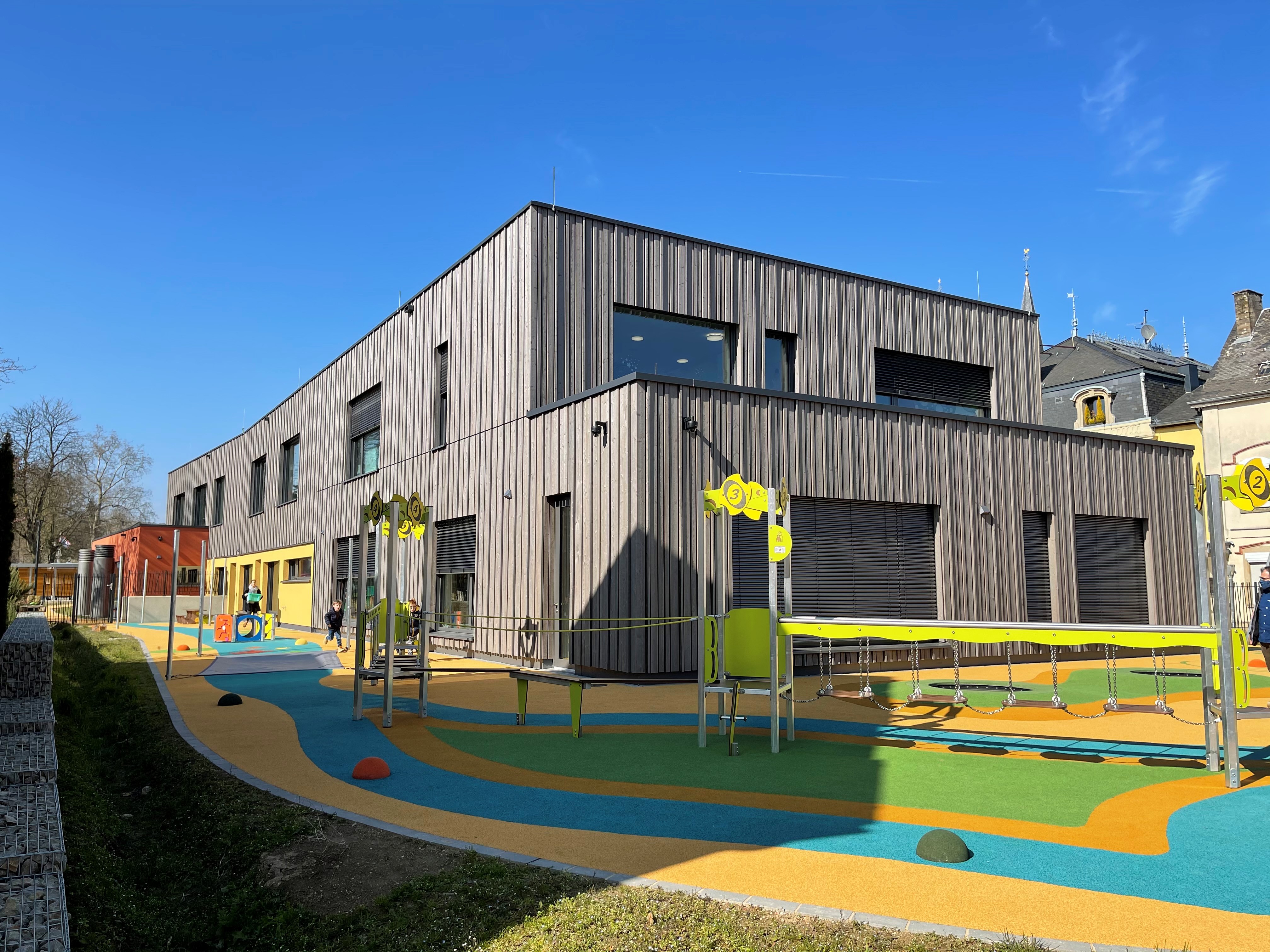 Le projet a été initié par les responsables communaux de Mertert en 2015. Avec leur décision de vouloir créer un lieu commun abritant tant l’éducation formelle (Cycle 1) que les structures d’éducation et d’accueil (éducation non-formelle), la Commune souhaite assurer un encadrement de qualité qui réponde aux besoins de l’enfant, lui offrant des opportunités d’expérience et d’apprentissage variées